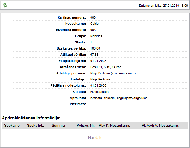 Uzklikšķinot uz izvēlētas saraksta rindiņas, apskatei tiek atvērta atbilstošā kartiņa, kurā pieejami ilgtermiņa ieguldījuma pamatdati un Apdrošināšanas informācija.